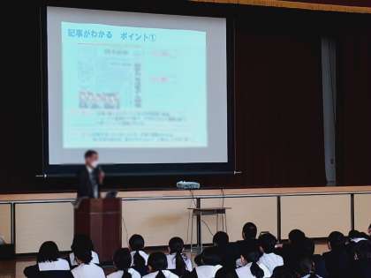 2年生の進路について考える授業で、本日午後、読売新聞社のみなさんをお招きして、新聞はどのようにしてできているのか、読者に届くまでの記事ができあがる工程等についてお話をうかがいました。