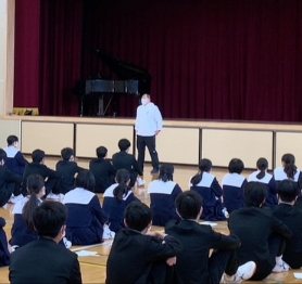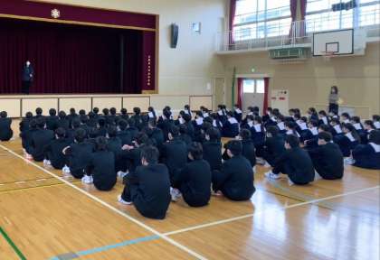 3年生にとって、中学校生活最後の定例学年集会となりました。学年主任の先生から、色々なことが最後になっていくけれども私たちらしく最後までやりきりましょう、というお話がありました。