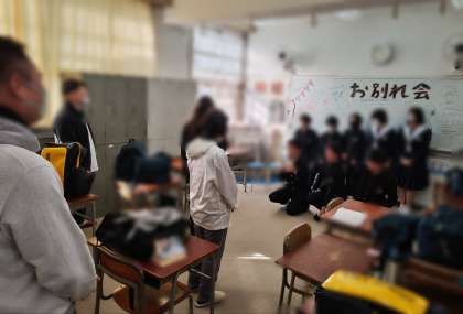 特別支援学級で、全体よりも一足先に3年生とのお別れ会を放課後行いました。終始にこやかな笑顔が見られ、最後の集合写真撮影では、送られる3年生は少し照れながらも3年間やりきったという誇らしさが見えました。