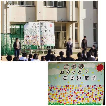 全校集会後、来週中学校を卒業する3年生へ、生徒会が中心となり1・2年生の生徒が3年生を送る会を催しました。