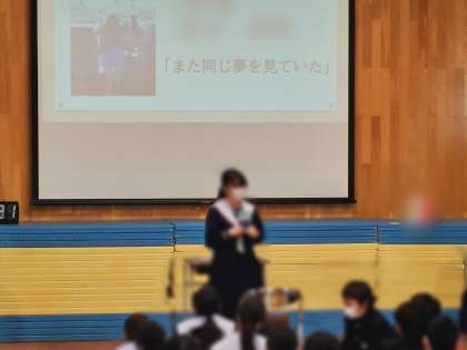 各生徒がおすすめの本を3分間で紹介するビブリオバトル。事前にそれぞれのクラスでの予選を勝ち抜いた6名の生徒によるビブリオバトルの本選をスクールアドバイザーの先生や他校の先生もお招きして格技室で行いました。さすがに予選を突破してきた6人のおすすめする本の紹介はどれも秀逸で、思わず本屋さんに行って手に取ってみたくなった、等の感想が聞かれました。