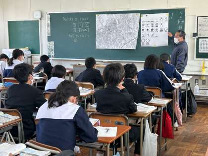 2年生の社会科の授業です。 地形図の使い方について学習しています。