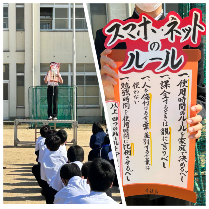 生徒会が主体となって昨年度末に決めた、「スマホ・ネットのルール」のポスターができました。