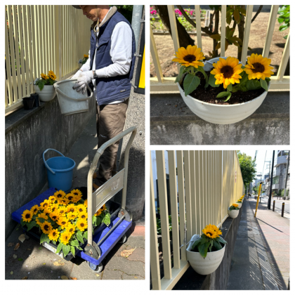 シクラメン、チューリップに続いて、ひまわりがきれいに咲いています。