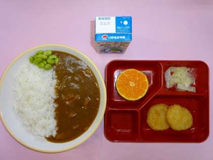 今日の給食では「シーフードカレーライス」の具に使っています。