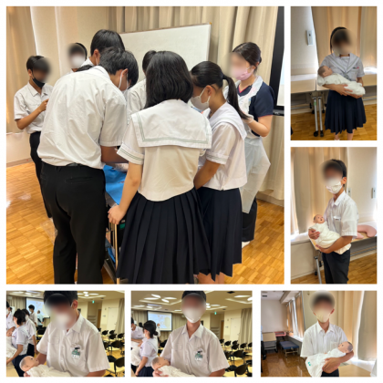 妊婦ジャケットを着て妊婦体験をしたり、新生児を見学したりしました。