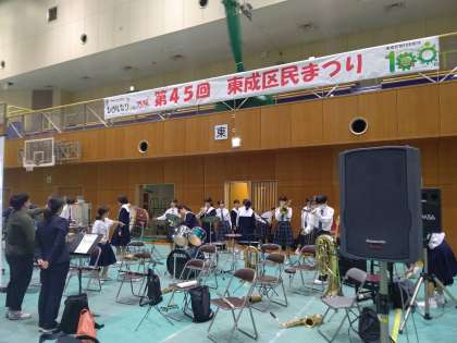 今日は小雨が降る中、東成スポーツセンターにて東成区民まつりで演奏します。只今、準備中です。