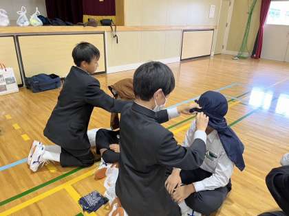頭頂部から出血した時の応急手当ての方法を学んでいます。