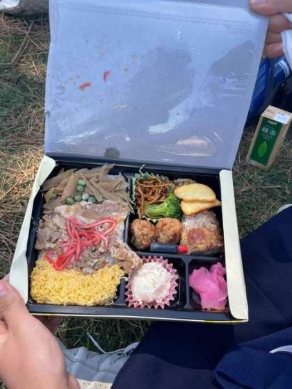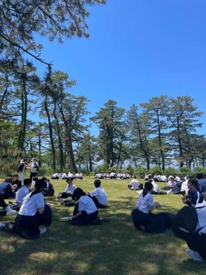 尼御前サービスエリアに着きました。学級写真を撮った後は、昼食をいただきます。