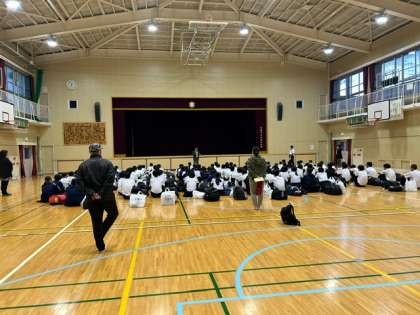 体育館で解散式を行っています。
