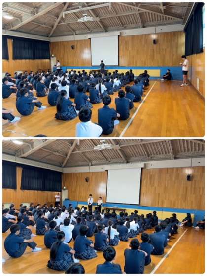 校外学習のフォトコンテストの表彰やその総括、そして学級代表、廻先生から体育大会に向けてさらに高めて頑張ろうというお話でした。