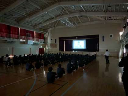 沖縄での戦争の様子を描いたアニメーション作品を見て、「なぜ沖縄だったのか?」をテーマに講義を聞きました。