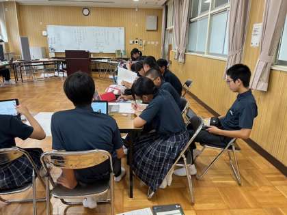 本日の生徒議会では、9/4の東成区未来会議に向けて、「防災」について調べて、資料を作成しています。