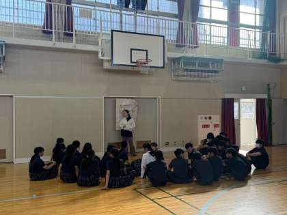 聖バルナバ病院から助産師の方を招いて講話をしてもらっています。