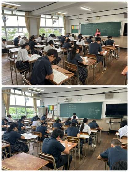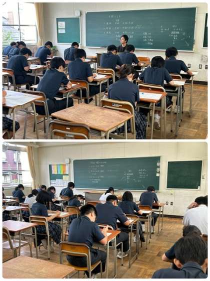 中間テストも2日目を迎え、生徒たちは引き続き真剣にテストに取り組んでいます。テストが進むにつれ、少し疲れも見え始めていますが、どの生徒も集中力を保ち、最後まで自分の力を出し切ろうとしています。