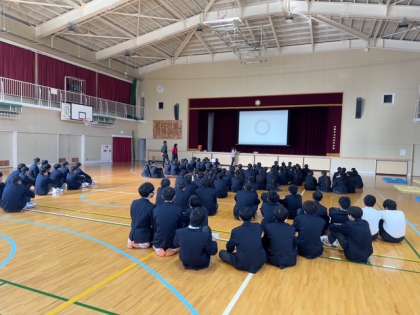 本日、2年生は人権学習の一環として、韓国の文化について学びました。講師の先生をお招きし、韓国の伝統や生活習慣、言語、食文化など、さまざまな視点からお話を伺いました。
