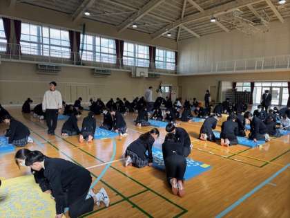 当日は、札を取る音や真剣な表情が体育館に広がり、練習の成果を発揮しようとする姿がとても印象的でした。一枚一枚の札に集中し、友だちと競い合う中で、和歌の美しさや日本の伝統文化に親しむ良い機会となりました。