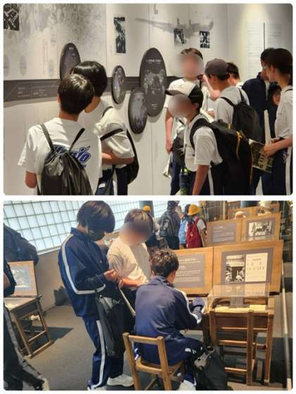 館内では、戦争や平和についての展示を真剣な表情で見学し、メモを取りながら熱心に学ぶ姿が見られました。
