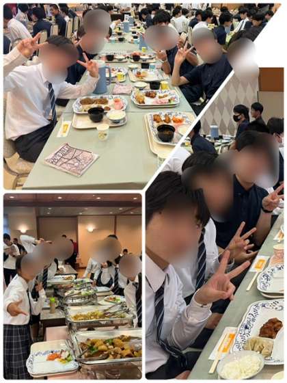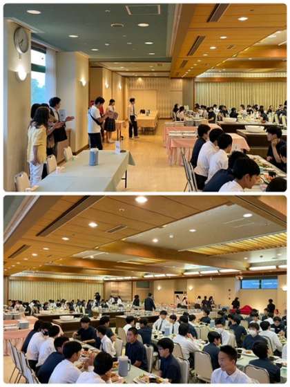 ホテル到着後、生徒たちは落ち着いた様子で入館式を行い、いよいよお待ちかねの夕食タイムとなりました。