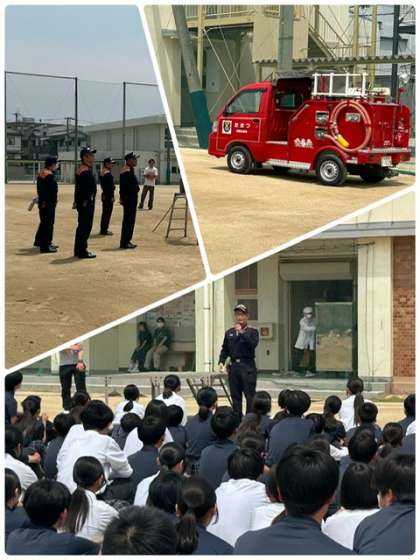火災時の初期対応や、絶対に水をかけてはいけないことなど、分かりやすく教えていただき、生徒たちにとっても大変貴重な学びの時間となりました。