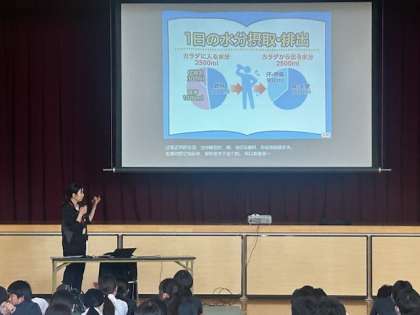 本日6限、2年生を対象に「水分補給教室」を体育館で実施しました。