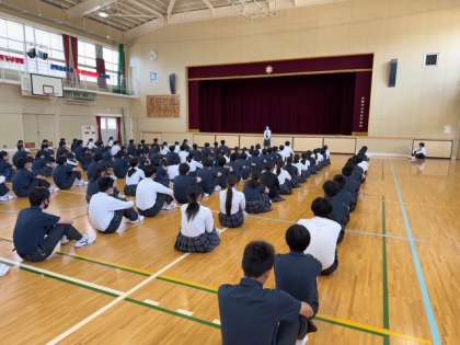 生徒たちは真剣な表情で話に耳を傾け、学校生活や学習への意識を高めている様子が見られました。
