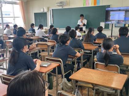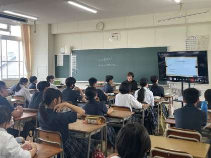 先日、2年生では学年集会をオンライン形式で実施しました。空き教室を活用して、委員長をはじめとする生徒がオンラインで発信し、各教室に配信する形で行いました。