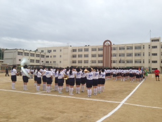 6月10日金曜日、第70回体育大会が行われます。その予行練習が今日曇り空の中で行われました。残念ながら、10時過ぎから雨が強くなり、途中で中止となりました。明日晴れれば、午後から今日の続きを行う予定です。
