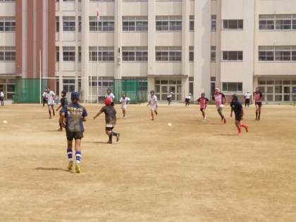 昨日から36度にまでなるという外気温の中、どろどろになりながらも楕円形のボールを追うラグビー部員。グラウンドは今日もソフトボール部とサッカー部でいっぱいです。