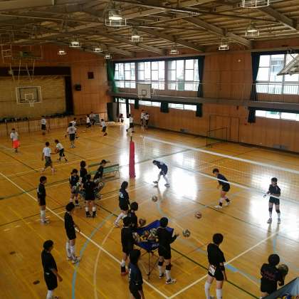 体育館ではバスケットボール部とバレーボール部がひしめき合っています。本庄中学校の体育館は少し狭いのですが、これだけの部員がこうして毎日練習出来ること、安心して練習出来ていることに感謝です。