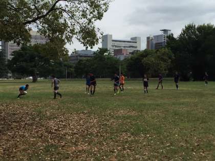 本日、ラグビー部は、練習会場を難波宮跡に移し活動しています。
