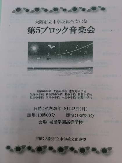 本日午後、第5ブロック音楽会が城星学園高等学校体育館をお借りして開演させて頂きました。各校、やはり聴きごたえのある演奏でした。