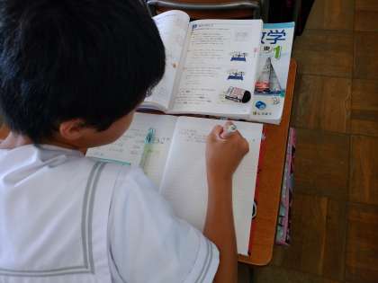 写真は1年生の数学の授業風景です。本当に熱心に授業に入っています。