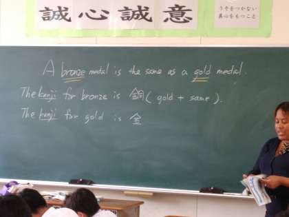 漢字を交えて、金に同じと書く「銅」はそんな風にも解釈できる。そんなことを英語で難が得る授業展開でした。