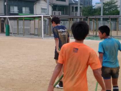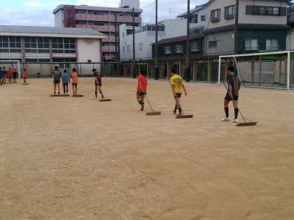 グラウンド整備は勿論、クラブ員の役目です。