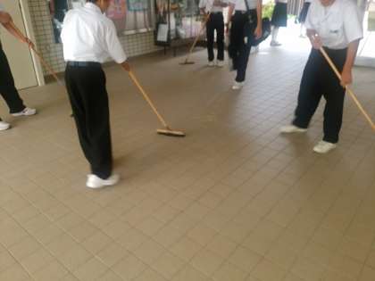 毎朝、風紀委員は晴れれば学校北側の歩道周辺、今日のような天候の場合は玄関や廊下の清掃をします。風紀委員と生徒会は「おはよう」と登校してくる生徒に挨拶運動をしています。