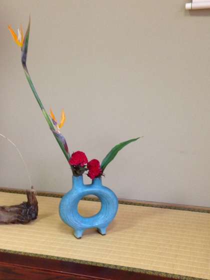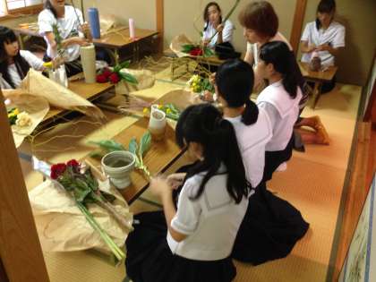 今日は、茶道部が、美術の先生の指導の下、「秋の花を生ける」をテーマに、生け花体験をしました。2枚目の写真は2年生が、3枚目の写真は1年生が生けました。