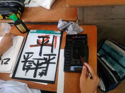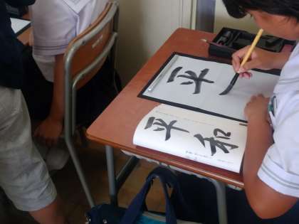 筆の扱いや墨や硯の使い方、筆の置き方や運び方も勿論、字を書くことの大切さや、一筆一筆の丁寧さを学んでいます。