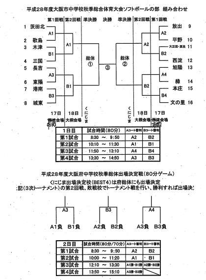 9月17日(土)18日(日)大阪市秋季総体ソフトボールの部組み合わせです。
