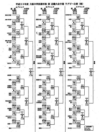 9月17日(土) 大阪中学校選手権 兼 近畿大会予選 ラグビーの部 組み合わせを掲載させていただきました。