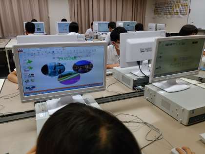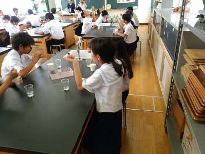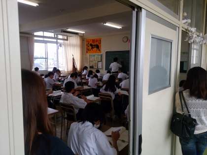 本日の2時間目です。パソコンを使った授業や数学の授業を参観される様子、理科実験では舌の感じ方を、体験しています。皆さんにも実験に参加して頂きました。