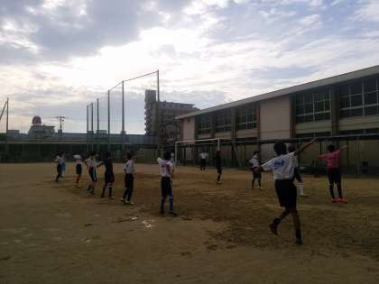 今日も朝練をしているクラブがあります。ソフトボール部、サッカー部、ラグビー部、バレーボール部。