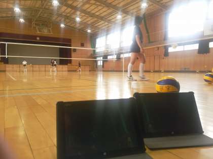 バレーボール部はタブレットを使って自身のフォームや全体の位置確認などもしています。