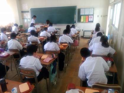 今日の昼休みの様子です。給食を食べている様子とグラウンドでボールを使って遊んでいる様子です。