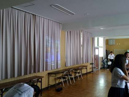 部隊練習にも熱が入ります。セリフを覚えたり、表情や相手との距離、立ち位置に苦労します。背景も投影し本番さながらで練習をしています。
