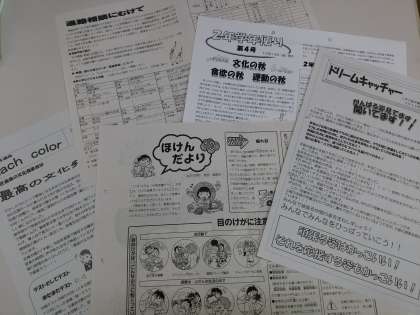 各クラスや学年、保健室などから、不定期ではありますが、お知らせなどを出しています。