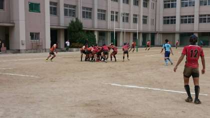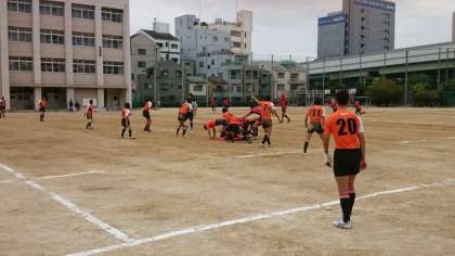 本日、市岡中学校で行われていました、大阪市中学校秋季総合体育大会ラグビー部は、東住吉中学校と対戦し38—5という大差で勝利しました。
