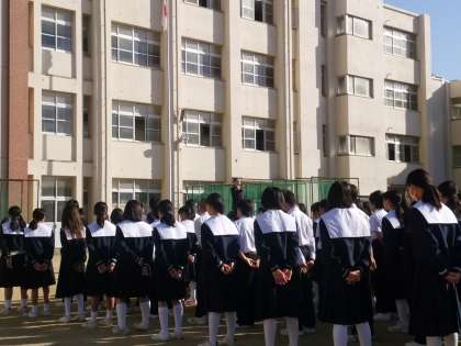 本日、晴天に恵まれたので、久しぶりにグラウンドで全校集会が出来ました。