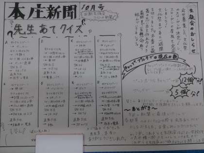生徒会からのお知らせや、お礼、先生当てクイズなど思考を凝らした内容になっています。