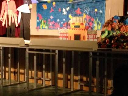 体育館では、1年生の舞台演技のリハーサルです。みんなとても楽しんでいます。